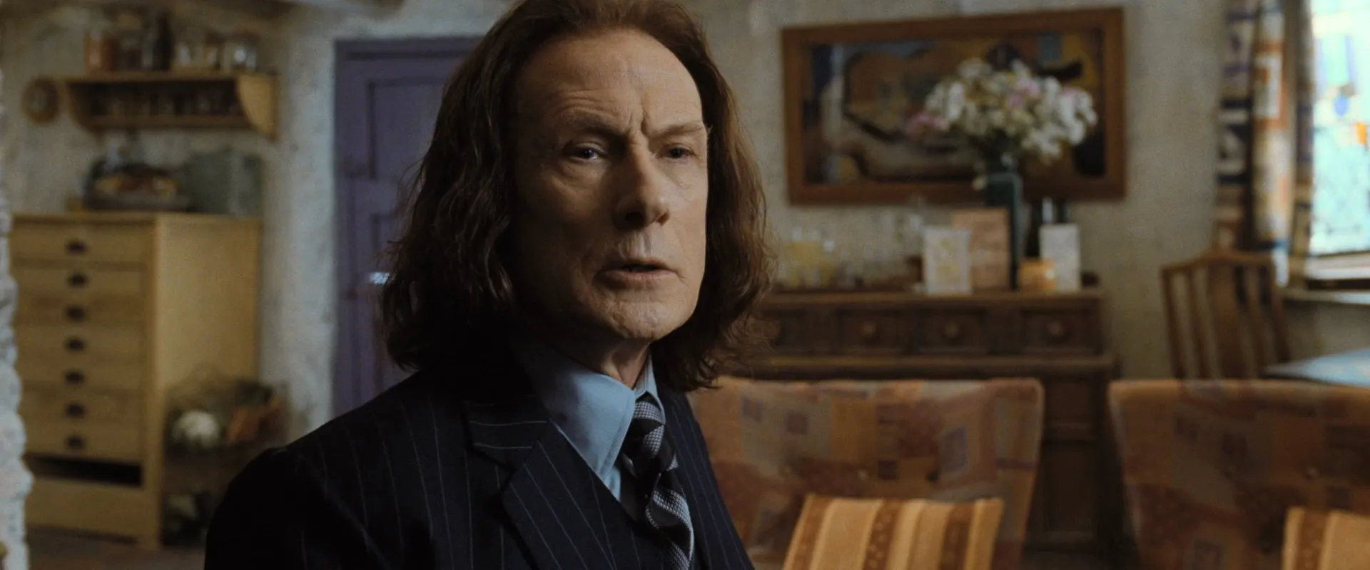 Cast: Daniel Radcliffe as Harry Potter, Rupert Grint as Ron Weasley, Emma Watson as Hermione Granger, Helena Bonham Carter as Bellatrix Lestrange, Robbie Coltrane as Rubeus Hagrid, Ralph Fiennes as Lord Voldemort, Michael Gambon as Albus Dumbledore, Bill Nighy as Rufus Scrimgeour, Brendan Gleeson as Alastor "Mad-Eye" Moody, Richard Griffiths as Vernon Dursley, John Hurt as Ollivander, Rhys Ifans as Xenophilius Lovegood, Jason Isaacs as Lucius Malfoy, Alan Rickman as Severus Snape, Fiona Shaw as Petunia Dursley, Timothy Spall as Peter Pettigrew, Imelda Staunton as Dolores Umbridge, David Thewlis as Remus Lupin, Warwick Davis as Griphook, Tom Felton as Draco Malfoy, Toby Jones as Dobby (voice), Dave Legeno as Fenrir Greyback, Simon McBurney as Kreacher (voice), Helen McCrory as Narcissa Malfoy, Nick Moran as Scabior, Peter Mullan as Corban Yaxley, David O'Hara as Albert Runcorn, Clémence Poésy as Fleur Delacour, Natalia Tena as Nymphadora Tonks, Julie Walters as Molly Weasley, Mark Williams as Arthur Weasley, Bonnie Wright as Ginny Weasley, Harry Melling as Dudley Dursley, Ian Kelly as Mr Granger, Michelle Fairley as Mrs Granger, Carolyn Pickles as Charity Burbage, Graham Duff as Death Eater, Guy Henry as Pius Thicknesse, Arben Bajraktaraj as Antonin Dolohov, Rod Hunt as Thorfinn Rowle, Suzie Toase as Alecto Carrow, Ralph Ineson as Amycus Carrow, Adrian Annis as Death Eater, Emil Hostina as Death Eater, Paul Khanna as Death Eater, Richard Strange as Death Eater, Anthony John Crocker as Death Eater, Peter G. Reed as Death Eater, Granville Saxton as Death Eater, Judith Sharp as Death Eater, Ashley McGuire as Death Eater, Penelope McGhie as Death Eater, Bob Yves Van Hellenberg Hubar as Death Eater, Tony Kirwood as Death Eater, David Ryall as Elphias Doge, James Phelps as Fred Weasley, Oliver Phelps as George Weasley, George Harris as Kingsley Shacklebolt, Andy Linden as Mundungus Fletcher, Domhnall Gleeson as Bill Weasley, Frances de la Tour as Olympe Maxime, Evanna Lynch as Luna Lovegood, Matyelok Gibbs as Auntie Muriel, Eva Alexander as Waitress, Matthew Lewis as Neville Longbottom, Jon Campling as Death Eater, Devon Murray as Seamus Finnigan, William Melling as Nigel Wolpert, Simon Grover as Death Eater, Freddie Stroma as Cormac McLaggen, Isabella Laughland as Leanne, Jessie Cave as Lavender Brown, Anna Shaffer as Romilda Vane, Josh Herdman as Gregory Goyle, Amber Evans as Twin Girl 1, Ruby Evans as Twin Girl 2, Katie Leung as Cho Chang, Georgina Leonidas as Katie Bell, Louis Cordice as Blaise Zabini, Scarlett Hefner as Pansy Parkinson, Afshan Azad as Padma Patil, Steffan Rhodri as Reginald Cattermole, Sophie Thompson as Mafalda Hopkirk, Daniel Tuite as Skinny Ministry Wizard, Daisy Haggard as Ministry Lift (voice), George Potts as Balding Wizard, Rose Keegan as Red Haired Witch, Ned Dennehy as Scared Man, Kate Fleetwood as Mary Cattermole, Daniel Hill as Bushy Haired Muttering Wizard, Rade Šerbedžija as Mykew Gregorovitch, Jamie Campbell Bower as Young Grindelwald, Hazel Douglas as Bathilda Bagshot, Adrian Rawlins as James Potter, Geraldine Somerville as Lily Potter, Miranda Richardson as Rita Skeeter, Michael Byrne as Gellert Grindelwald, Samuel Roukin as Snatcher, Toby Regbo as Young Albus Dumbledore (uncredited), Lewis Young as Snatcher (uncredited)